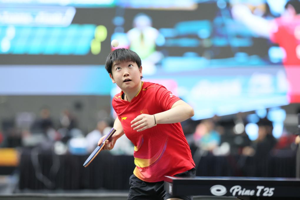 首要进行的是女团决赛,国乒女队对阵日本女队。首盘,王曼昱对战日本“削球手”桥本帆乃香,王曼昱在10:12先输一局的情况下,经过主动进攻与落点操控,以11:3、11:6、11:3完成“让一追三”,为我国女队拿下榜首分。