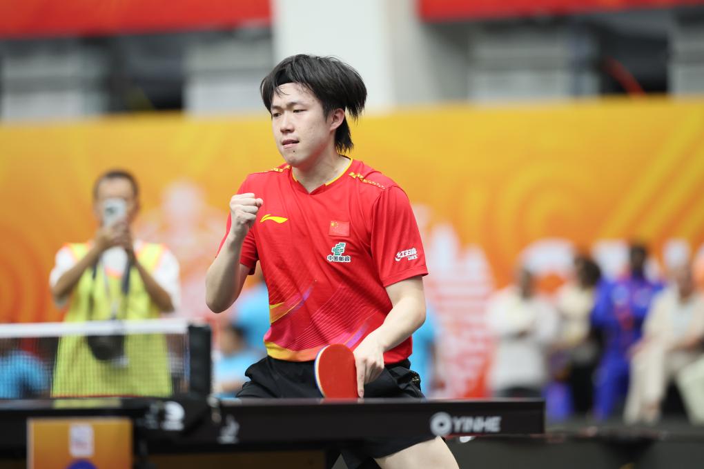 男团决赛,国乒男队对阵我国香港男队。首盘,林诗栋对阵老将黄镇廷,“小石头”仅用时15分钟就以11:8、11:4、11:4速胜对手,为我国男队拿到榜首分。